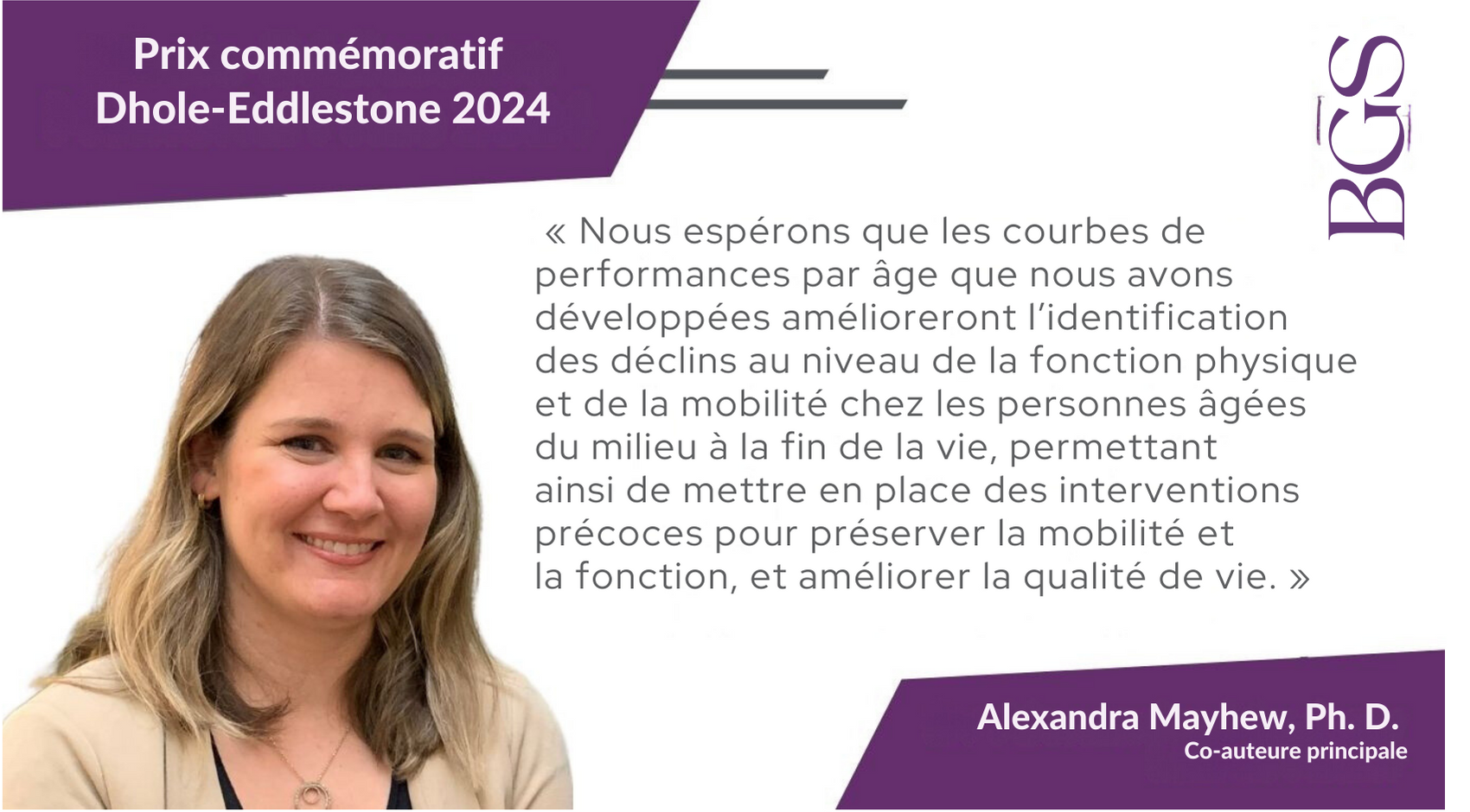 “Our team is deeply honoured to receive the Dhole-Eddleston Prize,” Mayhew said. “We hope that the age-specific performance charts we developed will improve the identification of low physical function and mobility in mid-to-late-life older adults, allowing for early interventions to preserve mobility and function and improve quality of life.”